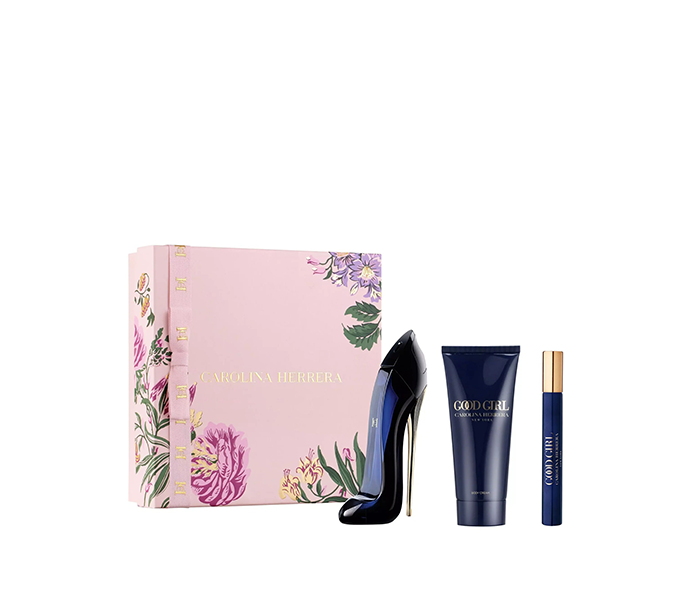 مجموعة هدايا فاخرة من Carolina Herrera Good Girl تقدم عطر Eau de Parfum بتركيز عالٍ 80 مل مع إضافات مثل لوسيون للجسم ونسخة صغيرة للسفر بأناقة تصميم الكعب الأحمر الأيقوني. تركيبة عطرية شرقية-زهورية تجمع بين اللوز، الياسمين، حبوب التونكا، الفانيليا والأخشاب لتعطي رائحة جذابة أنثوية تجمع بين القوة والأناقة — خيار مثالي كهدية مميزة لأي مناسبة.