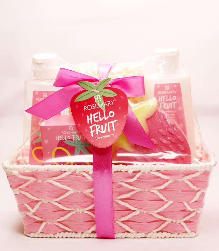 مجموعة هدايا الحمام في سلة ورقية مزخرفة – Hello Fruit Paper Rope Basket Bath Gift Set